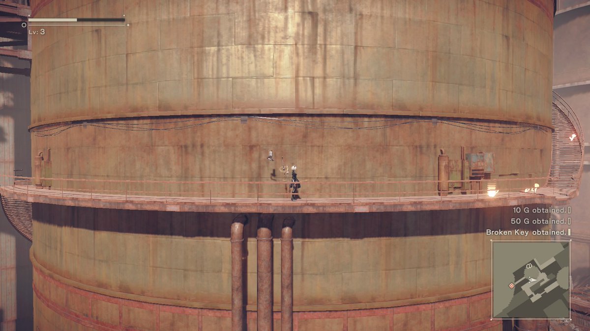 Mode selanjutnya mirip Action RPG pada umummnya alias third person point of view yang menampilkan karakter 2B cukup jelas.